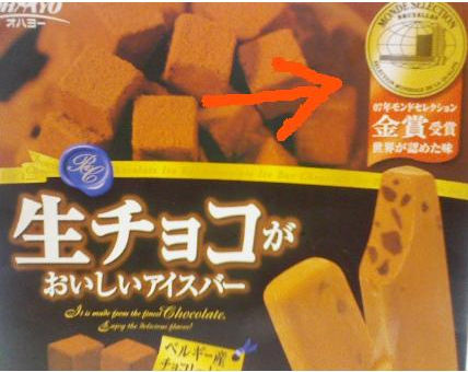 昨日、ピノを食べ、味をしめた私はまたアイスを買ってきました。 何を買おうか、迷った末にこれに決めました。 決め手は金賞受賞と書いてあったからです。 (判断のための情報にとぼしい時は、権威に頼らざるをえないものです。) とにもかくにも、おいしいアイスでした。 こってりしたチョコの粒粒がところどころに入っていて、 ほわ~♪ 美味でございます。 今日中に食べ終わる予定です。