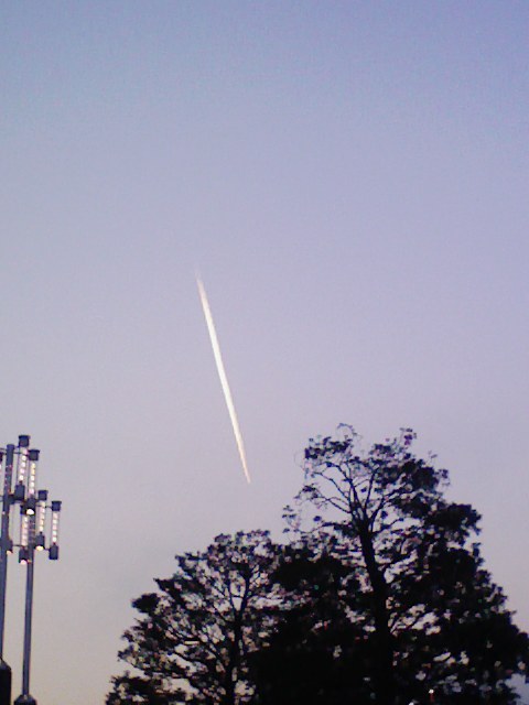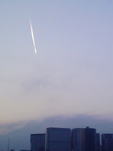 彗星が・・・落ちてくる・・・ 写真に撮ったら、 そんな風に見えました(私だけかな?) 綺麗な飛行機雲でした。